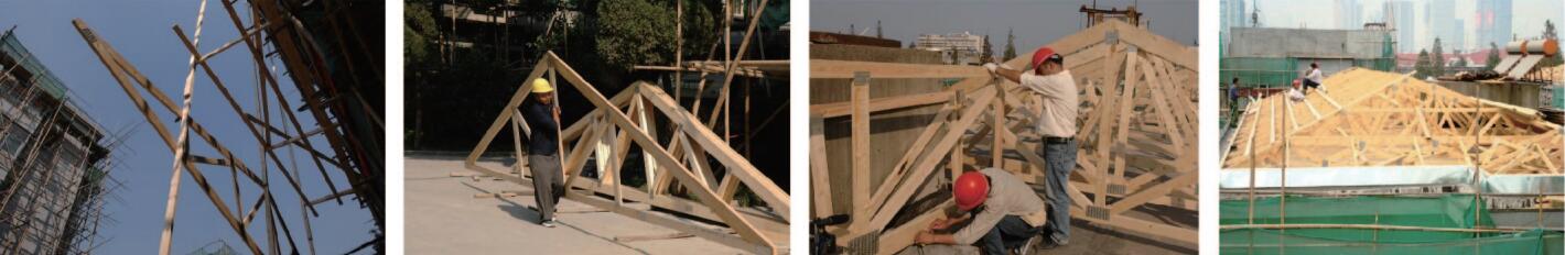 項目中將木桁架屋頂系統(tǒng)、木結(jié)構(gòu)預(yù)制墻體系統(tǒng)作為裝配式構(gòu)件,與新建混凝土裝配式建筑中結(jié)合使用。